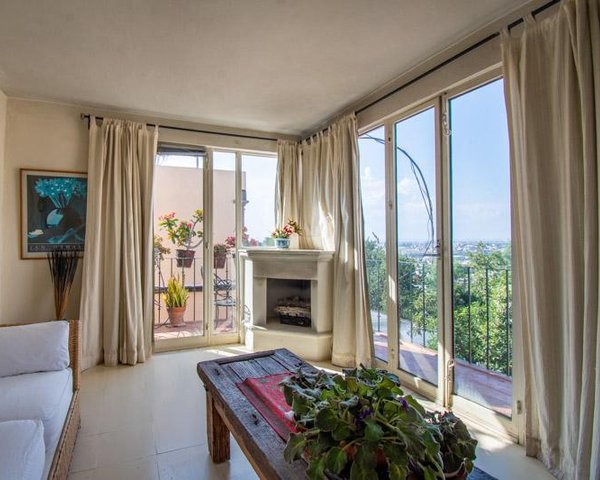 It has a comfortable bedroom with a large, filtered skylight, filling the cozy room with a diffuse, natural glow, a full bathroom and a cozy living room that opens to a wraparound balcony with spectacular views towards the landscape of the northwest of the city, as well as a spiral stair that connects with a private rooftop sitting area. This rooftop is perfect to enjoy sunsets.