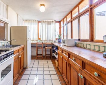 This lovely condominium, located on the third level, receives you with a luminous and cozy kitchen, ideal to start the day with local coffee or cook at home. The space flows naturally towards a rustic dining room with terracotta floors, perfect for intimate dinners or special moments, has a raised roof with glass-block light monitor windows.