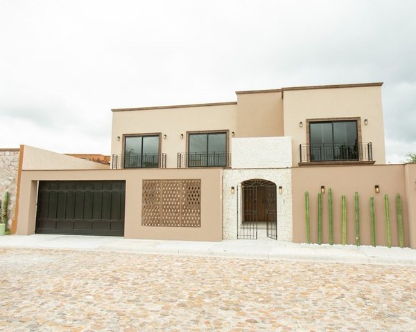 Space and privacy just minutes from the Historic Center Located in the prestigious gated community of Vista Antigua, this elegant residence offers the perfect blend of comfort, thoughtful design, and an unbeatable location—just minutes from the heart of San Miguel de Allende. A striking solid wood door welcomes you, flanked by a side garden and a two-car garage. The foyer, featuring exposed wood beams, leads through a limestone arch that frames the view of the spacious social areas: a living and dining room with vaulted ceilings, ideal for entertaining or relaxing with family. The open-concept kitchen is equipped with white granite countertops, a large pantry, and direct access to the garden. There’s also a service room with a full bathroom. On the ground floor, you’ll find a primary bedroom with views of the garden, a walk-in closet, and a full bathroom. All bedrooms feature wood-style laminate flooring, offering warmth, modern appeal, and easy maintenance. Upstairs, a beautiful wood staircase with double-height ceiling leads to the second level, which includes a second bedroom with an external full bathroom, an additional primary suite with a walk-in closet and en-suite bath, as well as a large study perfect for a home office, TV room, or reading space. The mature, landscaped garden features acacia trees, a swimming pool, and a covered terrace, ideal for enjoying San Miguel’s climate with friends and family. High-quality finishes are found throughout: large neutral-tone ceramic floors, handcrafted ironwork, cantera stone, exposed beams, and carefully selected details that add charm and character to every space. A home full of potential, with generous indoor and outdoor spaces, a pool, and an excellent location within a private, secure community close to everything San Miguel has to offer.