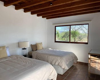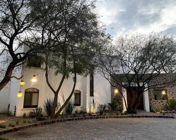 Dream Residence with Gardens, Rooftop & Pool in an Exclusive Residential Club Welcome to a property that blends traditional Mexican design with modern comfort. Located within a beautiful gated residential community with 24/7 security, a clubhouse with pool, and hourly shuttle service to downtown, this two-story home has been thoughtfully designed for those seeking a lifestyle of privacy, comfort, and harmony with nature. The house features 6 bedrooms, generous social spaces, botanical gardens, a solar-heated saltwater pool, a rooftop with dam views, and architectural details that evoke warmth — including terracotta tile floors, high ceilings, and exposed wood beams. ⸻ Area Breakdown ️ Bedrooms • 6 bedrooms distributed across two floors: • Ground floor: • Primary bedroom with King-size bed, en-suite bathroom, and abundant natural light. • Two secondary bedrooms with double beds sharing a full bathroom. • Upper floor: • Primary bedroom with two double beds and private full bathroom. • Two additional double bedrooms sharing a full bathroom. • Each bedroom offers a peaceful ambiance with neutral tones, functional furnishings, and views of the garden or mature trees. Bathrooms • 4 full bathrooms (2 en-suite, 2 shared). • 1 half-bath for guests. • Features include volcanic stone walls, rain showers, modern sinks, and natural ventilation. Professional Kitchen • Equipped with a 6-burner stove, industrial oven, built-in range hood, island with quartz countertop, and large windows looking out to the garden. • Stone accent walls combine with white cabinetry for a modern yet cozy atmosphere. Laundry Room • Located next to the kitchen, with washer and dryer, utility sink, open shelving, and independent water heater. ️ Living & Dining Area • Generous open-plan spaces with floor-to-ceiling windows, a cantera stone fireplace, high ceilings, and natural light. • Living room with flat-screen TV, ideal for family gatherings. • Dining room for 10 guests, featuring a second fireplace for warm, memorable dinners. Garden • Botanical-style landscape design featuring mature trees, lavender, rosemary, sage, and other aromatic species. • Includes lounge chairs, shaded rest areas, outdoor living room (seating for 10), and al fresco dining area. • Perimeter wall lined with natural vines for added privacy and beauty. Pool • 10-meter swimming pool with saltwater purification system and solar heating. • Decorative architectural wall with natural climbing plants and ambient lighting for nighttime enjoyment. Rooftop • Furnished rooftop terrace with panoramic views of the dam and sunsets. • Perfect for entertaining or enjoying quiet, private moments. Entrances & Service Access • Main entrance features a hand-carved wooden door. • Independent service access allows gardening, pool, and maintenance staff to enter without passing through the main house. • Private parking on-site. Clubhouse & Community • Gated community with clubhouse, swimming pool, landscaped gardens, social areas, and hourly transportation to downtown San Miguel de Allende. • 24/7 controlled access and security.