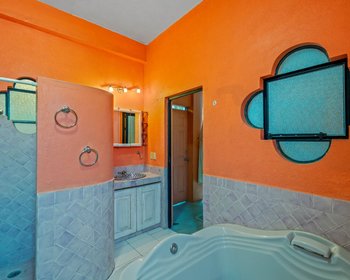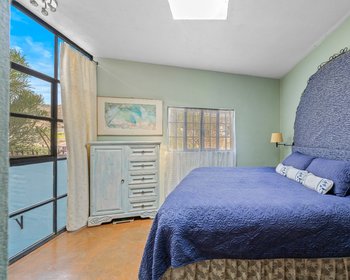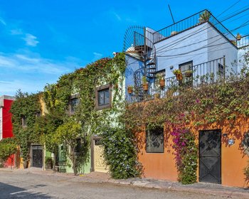 Sitting on a peaceful street in the desirable community of La Lejona, Casa Feliz is a charming property that can be be configured as either a single family home or a duplex. There are two floors with separate entrances, each with two bedrooms and bathrooms and their own kitchens. The spaces themselves open and creative—the unique flying concrete fireplace on the second floor is something to see—even the included furnishings offer a touch of whimsy. The intimate and lush entry courtyard opens to two entrances to the downstairs portion of the house as well as the staircase leading to the second floor. From there, it’s up the caracol staircase and you are on a cozy partially-covered rooftop terrace which offers views to the Los Picachos mountain range as well as the famous San Miguel sunsets to the West. La Lejona is conveniently located just behind La Comer, an easy flat walk to Centro that is also served by direct bus routes. This lovely and community features a diverse blend of Mexican nationals and foreigners from around the world, and has several restaurants and tiendas to explore. For the right buyer who is willing to do some updating, Casa Feliz is certain to reward you with a happy and gracious lifestyle. Four Bedrooms Four bathrooms Entry Courtyard Two kitchens Two living rooms Solarium Partially furnished Rooftop terrace
