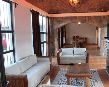 Situated on almost one hectare of land, this estate presents a hacienda-inspired design complete with meandering walkways and a central courtyard featuring a natural water source and citrus trees, all arranged on a single floor. The home contains 6 bedrooms, each equipped with a full bathroom, and is enhanced by the addition of freshly planted fruit trees. A large parking lot is available for multiple vehicles. Located near La Cieneguita, the property reflects a modern colonial aesthetic, with finishes that include stone, wood, Talavera tiles, quarry elements, and artisan metalwork.