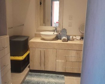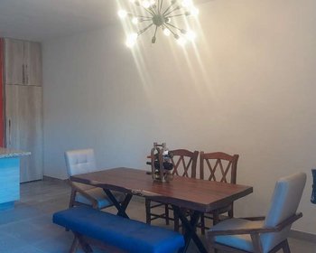 This stunning high-ceiling apartment features 3 spacious bedrooms and 2 full bathrooms. The layout includes a welcoming living room, a modern kitchen, a convenient laundry area, and a private terrace that opens to a rooftop garden.