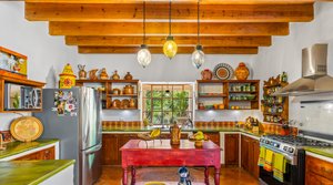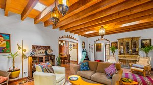 Just five minutes from the train station by car is a lovely country retreat. The 444 square meter lot surrounded by a high wall is lushly landscaped with a host of palms, cactus, flowering vines and trees and all manner of exotic plants. The house has three bedrooms and two baths. The expansive terrace looks out on a green, forested countryside with the Picacho mountains in the distance. Inside the house is a charming blend of rustic sophistication with a large, spacious kitchen with dining room and a large living room with fireplace. There is a free-standing garage that could double as an art studio. Of the two guest bedrooms, one is set up to act as a tv room and the other as an office with built-in shelves and cabinets.
