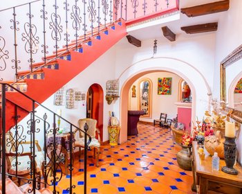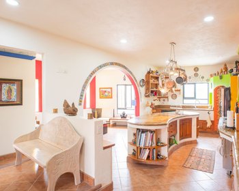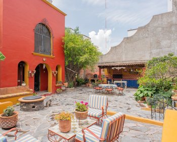 Charming Traditional Mexican Home with Casita in the Heart of San Miguel Step into a vibrant oasis of color and culture with this beautifully decorated home, designed in classic Traditional Mexican style. Boasting 3 spacious bedrooms and 4 full bathrooms, each bedroom features its own ensuite bath, offering ultimate privacy and comfort. The master suite includes a luxurious bathroom with a tub, and is complemented by an adjacent studio with a loft—perfect as an art space, private office, or cozy library retreat. One of the bedrooms is conveniently located on the main level and enjoys direct access to a TV studio, creating a welcoming and private space ideal for guests or extended family. Upstairs, you'll find the generously sized master bedroom and a charming guestroom, each offering a peaceful sanctuary. Outside, the lush courtyard is a true haven, brimming with greenery and designed for relaxation and entertainment. Enjoy multiple seating areas, a pizza oven, and a fully equipped outdoor kitchen—perfect for hosting gatherings under the San Miguel sun. A covered terrace with a bar sets the scene for laid-back afternoons and festive evenings. Across the courtyard, a separate one-bedroom, one-bathroom casita offers privacy and potential. With its private street entrance, this guest house features a gourmet kitchen with industrial stove, a dining room that seats 12, a cozy living area, and a rooftop terrace with views. Below, two additional rooms offer flexible space for storage or staff quarters. A private one-car garage ensures discreet access for guests, and the casita with garage could be rented independently for additional income or visitor privacy. This unique property comes furnished with select exceptions, and is thoughtfully designed to ensure a peaceful, inspired lifestyle in the heart of San Miguel.