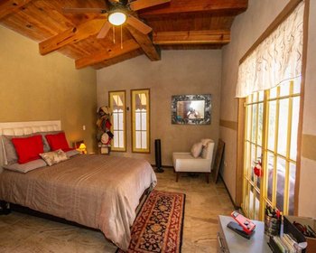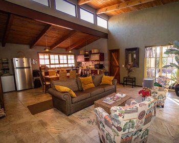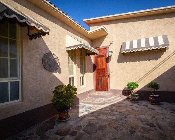 Discover everything you've been searching for in this thoughtfully designed home: comfort, convenience, security, sustainability, and timeless charm. Nestled in a secure gated community with 24/7 controlled access, this single-story residence blends modern living with ecological consciousness.Built with eco-friendly materials that naturally regulate indoor temperatures year-round, this bright and airy home features an open-concept layout, soaring ceilings, and expansive windows that fill the space with natural light. A wraparound patio enhances ventilation and invites seamless indoor-outdoor living.The smart floor plan offers maximum privacy, with each bedroom situated at opposite ends of the home — both complete with ensuite bathrooms. A spacious terrace provides the perfect setting to unwind with your favorite drink, whether enjoying a quiet afternoon or entertaining guests under the stars.A versatile carport is located within the property boundaries and can easily serve as an additional patio area or creative outdoor space. Optional furniture package available.