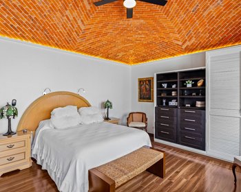 The main house welcomes you with a charming entry courtyard, featuring a striking sculpture by a renowned artist. To the left, you’ll find two spacious guest bedrooms, each adorned with elegant bóveda ceilings and ensuite bathrooms. Stepping into the expansive indoor living area, you’ll have easy access to the well-appointed kitchen, a guest bathroom, multiple dining spaces, and a covered terrace that will leave you speechless with its mesmerizing views. Adjacent to the intimate indoor/outdoor bar, a private jacuzzi awaits, offering one of the best vantage points on the property.