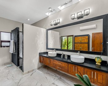 Solar panels installed on the roof enhance energy efficiency, while the unique corner lot location, adjacent to a lush common area garden, creates a tranquil, open-air ambiance rarely found in the city. Casa Jo combines timeless design, high-quality finishes, and a low-maintenance lifestyle in one of San Miguel de Allende’s most peaceful residential areas.