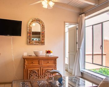 Sunsets, Space & Sophistication in Atascadero Set in the serene and elevated neighborhood of Atascadero, just minutes from the vibrant heart of Centro, this beautifully designed home offers the perfect balance of classic Mexican charm, modern comfort, and elegant flow. As you step through the entry hall and ascend into the main living area, the home unfolds dramatically—welcoming you with soaring boveda ceilings, natural light, and a warm, inviting energy. Main Living Level • Elegant living room with double-height boveda ceiling and gas fireplace, filled with light and character • Connected dining area opens effortlessly on both sides: o One side flows into the vaulted-ceiling kitchen with granite countertops, breakfast table, bar seating, and adjacent laundry area o The other expands into a tranquil patio with a fountain and outdoor dining area, perfect for entertaining or enjoying morning coffee Second Level – Private Quarters • Two guest ensuite bedrooms, each with: o Boveda ceilings o Views into the peaceful back patio o One includes a cozy TV/sitting area o One equipped with a gas heater • Spacious master suite featuring: o Boveda ceiling o Comfortable sitting/TV area o Windows with views to the street and into the living room’s dramatic double-height space o Minisplit system for A/C and heat Third Level Rooftop Terrace • A stunning sunset retreat, with: o One covered area for shade and relaxation o One open section for stargazing or soaking up city and mountain views Additional Highlights • Furnished and move-in ready • Spacious garage—a rare find in Atascadero • Ideally located: o Walking distance to El Jardín o Close to La Luciérnaga shopping center, banks, and cafés o Minutes from the Botanical Garden and other natural escapes This Atascadero residence offers privacy, views, and the timeless elegance of San Miguel—crafted with care, filled with light, and made to feel like home.