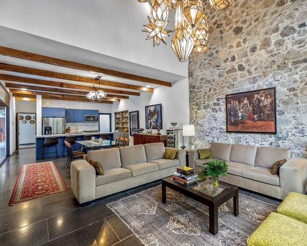 finished in 2023, this house of 4 bedrooms + TV room was built from scratch with a deep appreciation for the inner-exterior life, one of the distinctive stamps of San Miguel. The property presumes high -end finishes such as basalt floors, volcanic stone and quarry details and perfect fluidity between the luminous interior spaces and the quiet exterior spaces - all wrapped in a clean and elegant aesthetic of Mexican contemporary style. people), with granite roofs, high quality appliances and exquisite furniture.