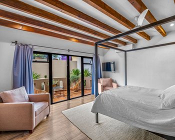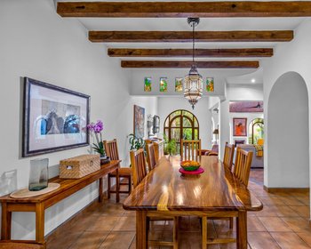 Welcome to Casa Raquel, tucked away in the highly sought-after neighborhood of Guadiana, known for its peaceful ambiance and unbeatable proximity to San Miguel’s historic center. This charming community is favored for its level streets, making the short walk to Centro effortless. A lovely neighborhood park, the popular organic market, and a variety of cafés, bakeries, and restaurants add to the appeal of this coveted location. Positioned above the garage, you’ll find a well-appointed two-bedroom, two-bathroom guest house. Designed with comfort and independence in mind, it includes a full kitchen, its own laundry facilities, and comes fully furnished. This casita offers an excellent opportunity for rental income. The primary residence features two bedrooms and two-and-a-half bathrooms, offering a thoughtful layout and abundant natural light throughout. On the first floor you find a beautiful kitchen outfitted with granite countertops and premium appliances, a formal dining area, and an elegant living room that opens onto a tranquil garden with a water feature and built-in barbecue.The ground floor also boasts a secure garage, spacious laundry and storage room. Upstairs, a cozy office area leads into the primary suite, which includes an en-suite bathroom with dual vanities and a custom steam shower. The bedroom is climate-controlled with a mini-split system for year-round comfort. A private guest retreat awaits on the uppermost level, where a secluded bedroom and serene terrace create a spa-like escape among the treetops. The rooftop terrace offers sweeping views of San Miguel’s iconic Parroquia, providing a picture-perfect backdrop to this unique and inviting home.
