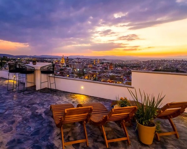 magine city-wide vistas of the entire city of San Miguel de Allende from your own Xanadu-like resort setting, all within walking distance of the Jardin, our town square—that’s Casa Celestial! If you like the concept of living on Cloud Nine—with the views to match—this is the estate you need to see with me tomorrow! Casa Celestial boasts an abundance of resort-like amenities: heated LED-lit pool with wall-fountain waterscaping; covered outdoor family room—living, dining, game/TV area—with adjacent butler’s kitchen; city-wide vistas from eight different terraces, one being the tallest in the entire neighborhood; two elevators servicing garage to roof terrace; beamed-ceiling double-height living room with great-room layout; floor-to-ceiling windows in most bedrooms; mini-splits in every bedroom; and upgraded hotel-quality furnishing throughout, inclusive. Three of the six bedrooms can easily serve as primary bedrooms—some with a wine fridge and an outdoor jacuzzi boasting city-wide sunset views—and the main bedroom is accessed via a glass elevator, adjacent to the marble dual-sink bathroom with a sculptural tub and separate shower. All rooms—even the kitchen—boast sliding or accordion doors maximizing the home’s indoor-outdoor lifestyle. And the roof terrace is unsurpassed for protected city-wide views three-stories above the neighboring home—the BASE jumper in your family could wingsuit from the roof to the Jardin in seconds! Naturally, Casa Celestial boasts all the technical and mechanical amenities expected from this demographic: commercial-grade glass elevators; full house filtration accompanied by reverse osmosis in the kitchen; automatic pool filtering with a sand capture system; electric-door garage; mini-splits throughout…the list is extensive, we’ll point them out on tour! Come join me for your own Walk in the Clouds—I’ll substitute for Keanu—and we’ll enjoy that Napa Cabernet on the roof terrace at sunset, butterfly wings are optional. You won’t want to leave until midnight…or until closing!