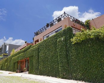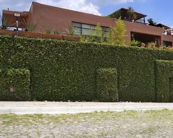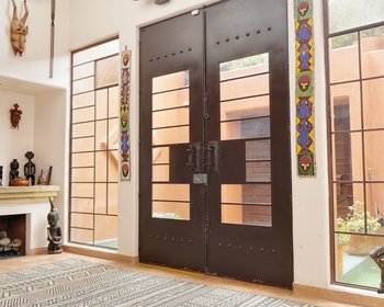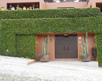 Stunning Mexican modern style home with stylistic touches reminiscent of Frank Lloyd Wright. Located across from the Los Charcos Federal Ecological zone the entrance is an amazing, oversize metal door framed by 2 large artisanal fountains. The floor plan is reversed allowing for wonderful views from the public areas and studio and intimate cool spaces in the bedrooms in the summer. 3 bed/3bath, marble or artisanal tile in each bath. There are 5 fireplaces, 2 large walk in closets as well as plenty of storage in kitchen, garage etc. The light fixtures were designed by the architect and crafted locally. The furnishings were also designed by the architect and were made locally from mesquite. Everything in the house from garage gate openers to ceiling fans are of the highest quality and has been well cared for. There are wonderful plantings both in ground and in large pots throughout the property that will convey with the property. The various terraces are safe for small dogs.