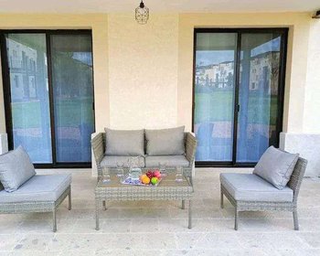 For sale, spacious apartment, well oriented, bright, with high ceilings, garden level, covered terrace, view protected by gardens, excellent layout, open kitchen with granite countertops, living room and dining room with access to terrace, each bedroom with bathroom and closet. Subdivision with pleasant common areas, sidewalks, swimming pools, fire pits, paddle tennis courts, petanque, children's play areas, pet park, spa, gym, and business center. Call us and we will be happy to schedule an appointment for you to see it.