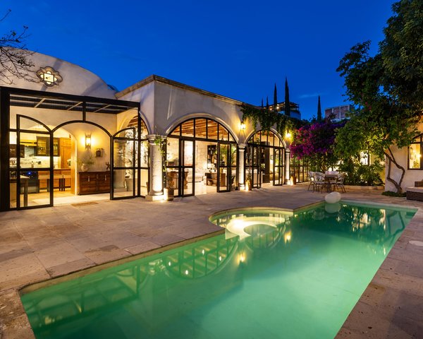 Discover this stunning completely renovated home in the heart of San Antonio, perfectly positioned on the highly sought-after Avenida Allende. This exceptional property offers the rare luxury of single-level living with an easy flat walk to both Parque Juárez and the iconic Jardín Principal, placing you at the center of San Miguel de Allende's vibrant cultural life. Upon entering the property, you first arrive in a beautifully curated reception area, from here you walk through a lovely corridor adorned with beautiful bougainvillea. You will then encounter stunning antique wooden doors before entering the main property, creating a sense of anticipation and grandeur from the very first steps. Every detail of this remarkable hacienda-style residence was thoughtfully updated in 2024, creating a perfect blend of colonial/Spanish charm with Moorish design elements and modern luxury. The home features a dream kitchen designed for both daily living and grand entertaining, flowing seamlessly into an expansive dining and living room that is flooded with natural light throughout the day. Behind the living room, you will discover an outstanding Jardin d'hiver that adds another dimension of indoor-outdoor living to this remarkable space. The open floor plan perfectly captures the relaxed elegance of the San Miguel lifestyle. The main residence offers three generously sized ensuite bedrooms, each a private sanctuary with its own beautifully appointed bathroom featuring a shower, with two of the bathrooms also boasting beautifully handmade travertine bathtubs for ultimate relaxation. Every bedroom is enhanced by an individual gas fireplace showcasing stunning hand carved cantera stonework, while air conditioning ensures year-round comfort during San Miguel's warmest months. Adding to the property's versatility is a completely independent guest casita, thoughtfully designed on ground level to match the main home's single-story convenience. This charming space features a fully equipped kitchen allowing guests complete autonomy, a large living and dining area that also serves as a comfortable TV room perfect for extended stays, and a private bedroom with air conditioning. The casita's luxurious spa bathroom provides the ultimate in guest comfort and privacy. The crown jewel of this extraordinary property is its beautifully designed outdoor entertaining space, offering a private oasis away from the city's hustle and bustle while remaining steps from San Miguel's main attractions. The large swimming pool is surrounded by relaxing daybeds and is complemented by a soothing water feature that provides gentle ambient sound throughout the space. Mature trees provide natural shade and beauty, creating a serene backdrop for relaxation and entertainment. The outdoor living experience is elevated by a fully equipped outdoor kitchen perfect for al fresco dining, a spacious seating area for intimate gatherings, and an impressive large cantera dining table that serves as the centerpiece for memorable dinner parties under the stars. A convenient powder room ensures guests' comfort during outdoor entertaining. Practical amenities include a separate laundry room, additional storage, and a covered garage for one vehicle. The entire property benefits from single-level, ground-floor living with no stairs, making it accessible and comfortable for residents of all ages. This extraordinary property represents the pinnacle of San Miguel living, combining the unparalleled convenience of a central location on prestigious Avenida Allende with the luxury of expansive private outdoor space, all wrapped in beautifully renovated hacienda-style colonial/Spanish architecture with distinctive Moorish influences. The home comes fully furnished with the exclusion of art objects and books, allowing new owners to move in seamlessly and begin enjoying the San Miguel lifestyle immediately.