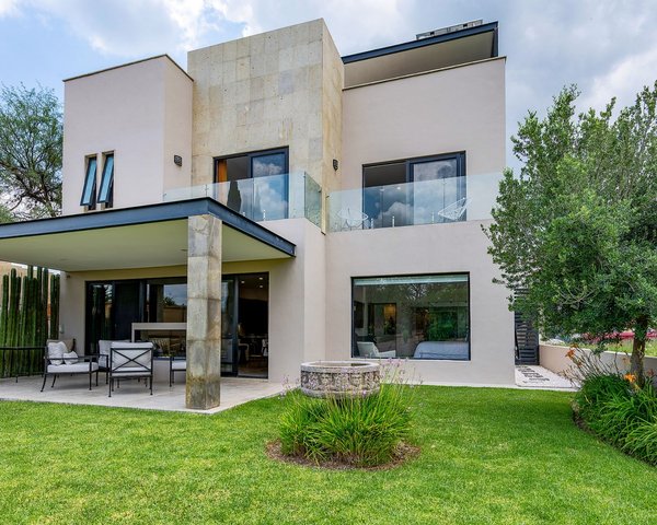 Perched in a privileged location within the prestigious Ventanas community, Casa Vista Ventanas is a contemporary home that blends luxury, comfort, and spectacular golf course views. Bordering green space and overlooking two fairways, the property offers sweeping vistas across the beautifully landscaped Ventanas golf course and beyond. Thoughtfully designed and fully updated, the home features four bedrooms and four and a half bathrooms, with the primary suite conveniently located on the main floor. This tranquil retreat enjoys serene golf course views and a spa-like bathroom with an indoor-outdoor soaking tub and a spacious walk-in closet. The chef’s kitchen flows seamlessly into the dining and living areas, where large windows frame the golf course and a cozy fireplace anchors the space. Beautifully furnished throughout, the home is offered turn-key, fully furnished with curated pieces that enhance its contemporary character. Upstairs, two en-suite bedrooms accompany a comfortable television room and a versatile flex space that could serve as an additional bedroom, office, or studio. A private fourth bedroom and bathroom on the next level provide direct access to the home’s crown jewel—its expansive rooftop terrace. Designed for entertaining and relaxation, the rooftop boasts a plunge pool, outdoor kitchen, generous seating areas, and panoramic views stretching across the golf course and toward downtown San Miguel de Allende. With updated systems, elegant finishes, and a highly sought-after location within Ventanas, Casa Vista Ventanas represents exceptional value for those seeking style, comfort, and views in one of San Miguel’s most desirable communities.