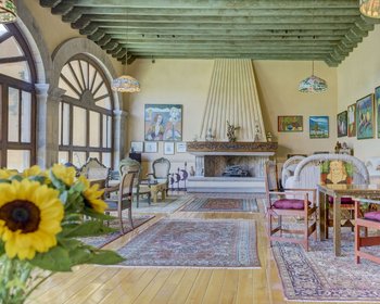 The Hacienda’s timeless stucco walls exude a sense of permanence, while the natural stone façade and terracotta roof tiles ground the property in rustic charm. Inside, soaring beamed ceilings and classic architectural details create an atmosphere of grandeur. The main floor is designed to welcome and inspire, with a kitchen adorned in hand-painted tiles beneath a dramatic boveda ceiling, and a dining room featuring a vintage carved table and stately colonial chairs—perfect for cherished gatherings. The expansive living room opens to a serene internal patio, inviting indoor-outdoor living. For entertainment, a vast game room equipped with a fireplace, bar, pool table, and cozy seating provides a vibrant space, while the gym, steam room, and hot tub offer a luxurious escape for relaxation.